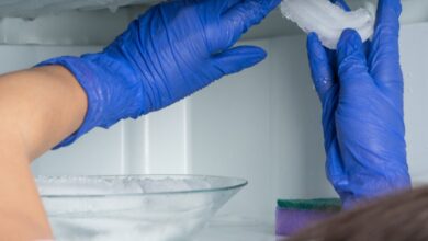 - فصل التيار الكهربائي عن الثلاجة، وإبعاد الثلاجة عن الجدار، ومن الجدير بالذكر أن الطعام يبقى باردًا داخل الثلاجة بعد فصل التيار الكهربائي لمدة أربع ساعات، ولكن يجب الحرص على تجنب فتح باب الثلاجة للمحافظة على الهواء باردًا في داخلها، بينما تصل مدة بقاء الطعام متجمدًا في داخل الفريزر إلى 24-48 ساعة.