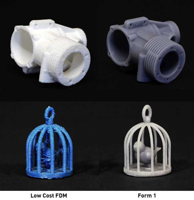 - Stereolithography أو الطباعة المجسمة: وهي تستخدم أيضًا العملية المضافة ولكن بدلاً من قذف البلاستيك، تستخدم العملية شعاع ضوء فوق بنفسجي لتصلب نموذج من مجموعة من السوائل الحساسة للضوء. وهذا يسمح للحصول على نسخة مطبوعة عالية الجودة.